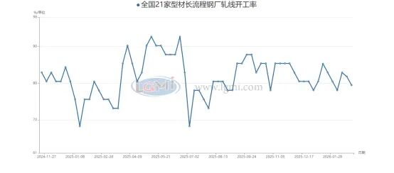 從全國21家長流程型鋼鋼廠軋線開工率數(shù)據(jù)來看,2026年2月開工率呈現(xiàn)同比回升、環(huán)比小幅回落的態(tài)勢。具體來看2026年2月開工率約為82%,較2025年同期的78%提升約4個(gè)百分點(diǎn)。主要得益于節(jié)后復(fù)工節(jié)奏加快,以及終端需求提前釋放,長流程鋼廠生產(chǎn)積極性高于去年同期。從環(huán)比方面來看,2月開工率較1月的85%下降約3個(gè)百分點(diǎn)。主要受春節(jié)假期影響,部分鋼廠在節(jié)前進(jìn)行了例行檢修,疊加節(jié)后工人返崗率尚未完全恢復(fù),導(dǎo)致整體開工負(fù)荷有所回落。不過長流程鋼廠開工率的韌性依然較強(qiáng),一方面原料端成本相對可控,鋼廠利潤空間尚可。另一方面長流程產(chǎn)品在規(guī)格、質(zhì)量上的優(yōu)勢,使其在訂單承接中更具競爭力。