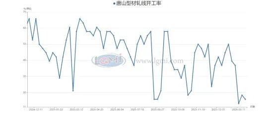 唐山調(diào)坯型鋼廠方面2026年2月開工率約為18%,遠(yuǎn)低于2025年同期的40%左右,同比降幅超過20個(gè)百分點(diǎn)。這主要是由于調(diào)坯廠對原料成本更為敏感,在坯料價(jià)格高企的背景下,利潤空間被大幅壓縮,導(dǎo)致企業(yè)主動減產(chǎn)。環(huán)比方面2月開工率較1月的13%有所回升,環(huán)比提升約5個(gè)百分點(diǎn)。但整體仍處于歷史低位,復(fù)產(chǎn)節(jié)奏明顯慢于長流程鋼廠。唐山調(diào)坯廠開工率的低迷,反映出區(qū)域內(nèi)型鋼供應(yīng)端收縮的格局仍將持續(xù)。