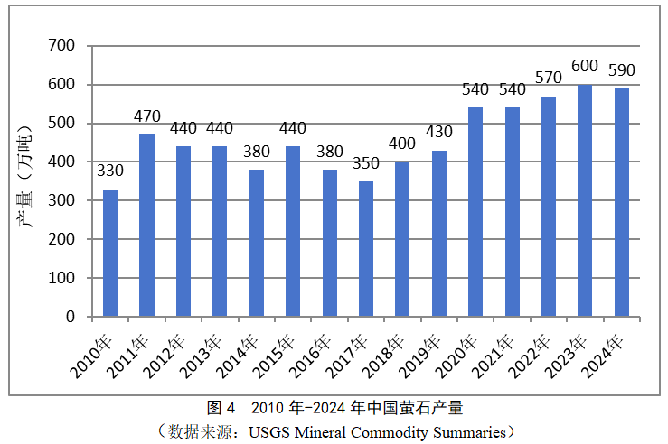 2010年-2024年中國螢石產(chǎn)量情況見圖4。