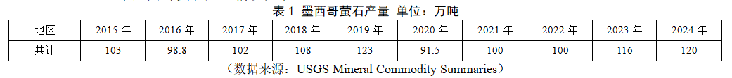2013-2024年墨西哥螢石產(chǎn)量情況見表1。