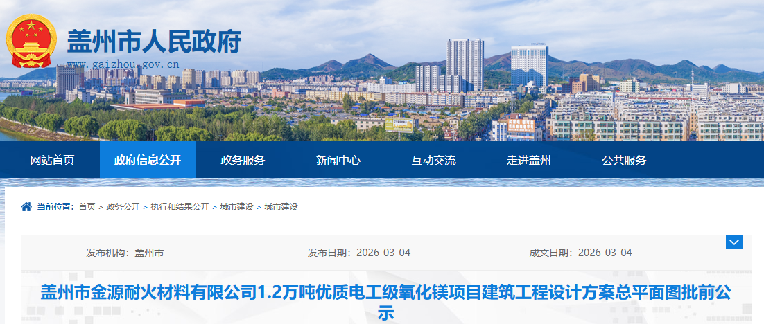 蓋州市金源耐火材料有限公司(2025年1月6日變更為蓋州市匯佳耐火材料有限公司)1.2萬(wàn)噸優(yōu)質(zhì)電工級(jí)氧化鎂項(xiàng)目,規(guī)劃用地性質(zhì)為工業(yè)用地,項(xiàng)目用地面積為15942平方米?,F(xiàn)建設(shè)單位已委托設(shè)計(jì)單位按照相關(guān)技術(shù)標(biāo)準(zhǔn)和規(guī)范優(yōu)化完善了建設(shè)工程規(guī)劃設(shè)計(jì)方案,現(xiàn)將規(guī)劃設(shè)計(jì)方案予以公示并公開(kāi)征求相關(guān)厲害關(guān)系人意見(jiàn)。